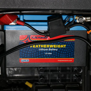 The installation for the new Fire Power Featherweight battery went very easy. It is light, easy to maneuver, and it comes with some plastic shims that you can use to take up the free space created by the smaller battery. I would say that the shims are probably not a final installation design and that you are probably going to spend more time figuring out how to properly and firmly secure your battery compared to the actual install and hook up. Some manufacturers do make the lithium battery dimensions the same size as the OEM dimensions so they fit as designed, and if you have this option, it is a good way to go. In my case the new lithium battery was about 1 3/4" shorter. I would also like to point out that the lithium battery can be installed in any position, and I never liked having my lead acid battery installed on its side.
