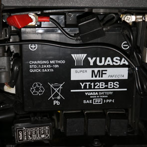 The existing Yuasa lead acid battery has been reliable, but is growing tired. Time for a new battery.
